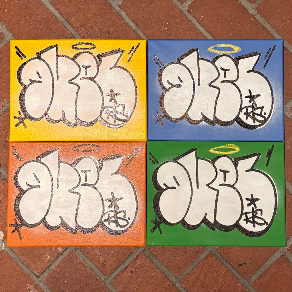 Yes yes y'all! Just a little something for the serious collector. Gotta get you one of these canvases with yo boy’s throws. Cop one of these Duel joints with a solid fill and background or one of these gritty layered pieces. These mixed media paintings are one of a kind joints and will make a nice addition to anyone's stash! Canvases measurements are 10x10 or 9x12 inches, signed and dated on back. Extras included. Stop stalling and cop yours now!