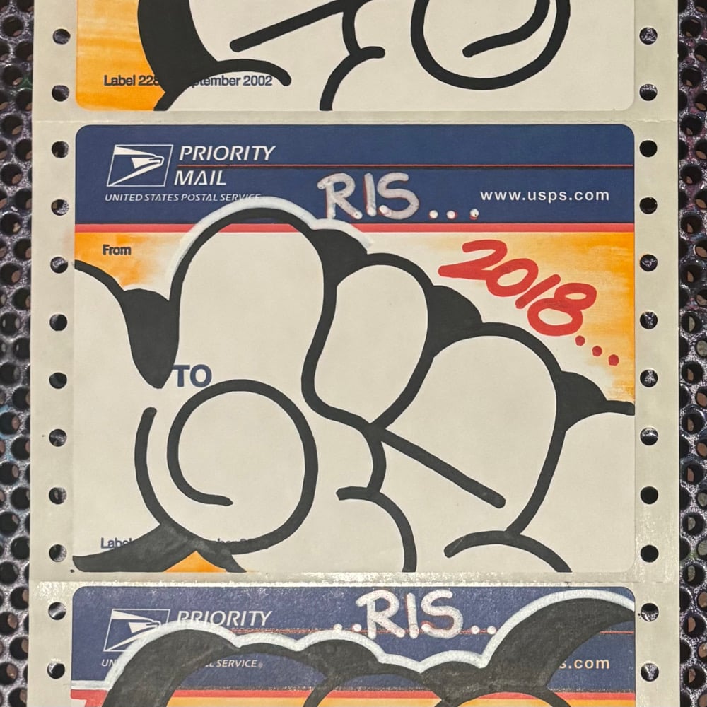 Can't front, Giz MTA put in mad work in the 90s now he's back and all business as usual. Here's a chance to grab last 228 of this type. This is a one of one set of three Giz throws from 2018 on 2002 USPS “Blue Tops.” Our boy has done moved on to bigger and better things so get it while you can, only one like these out there! Extras included.