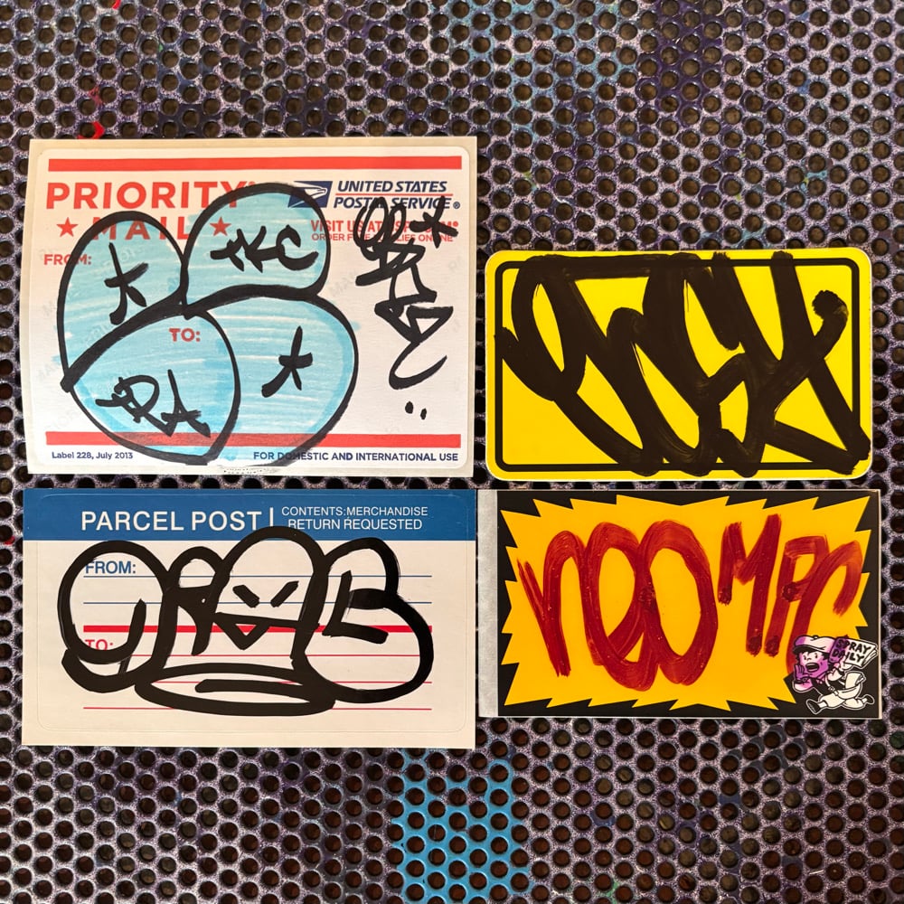 Ayo! While supplies last, we are offering heavy hitter sticker packs. These packs are from our personal collection and include four hand done stickers from some of the best writers in the graff game. Each pack is unique and randomly selected. No dupes, no subs. These sets are best if you are starting your collection or like variety. Yea mane! Extremely limited, so grab what you can! Extras included. Check back for updates on this item!